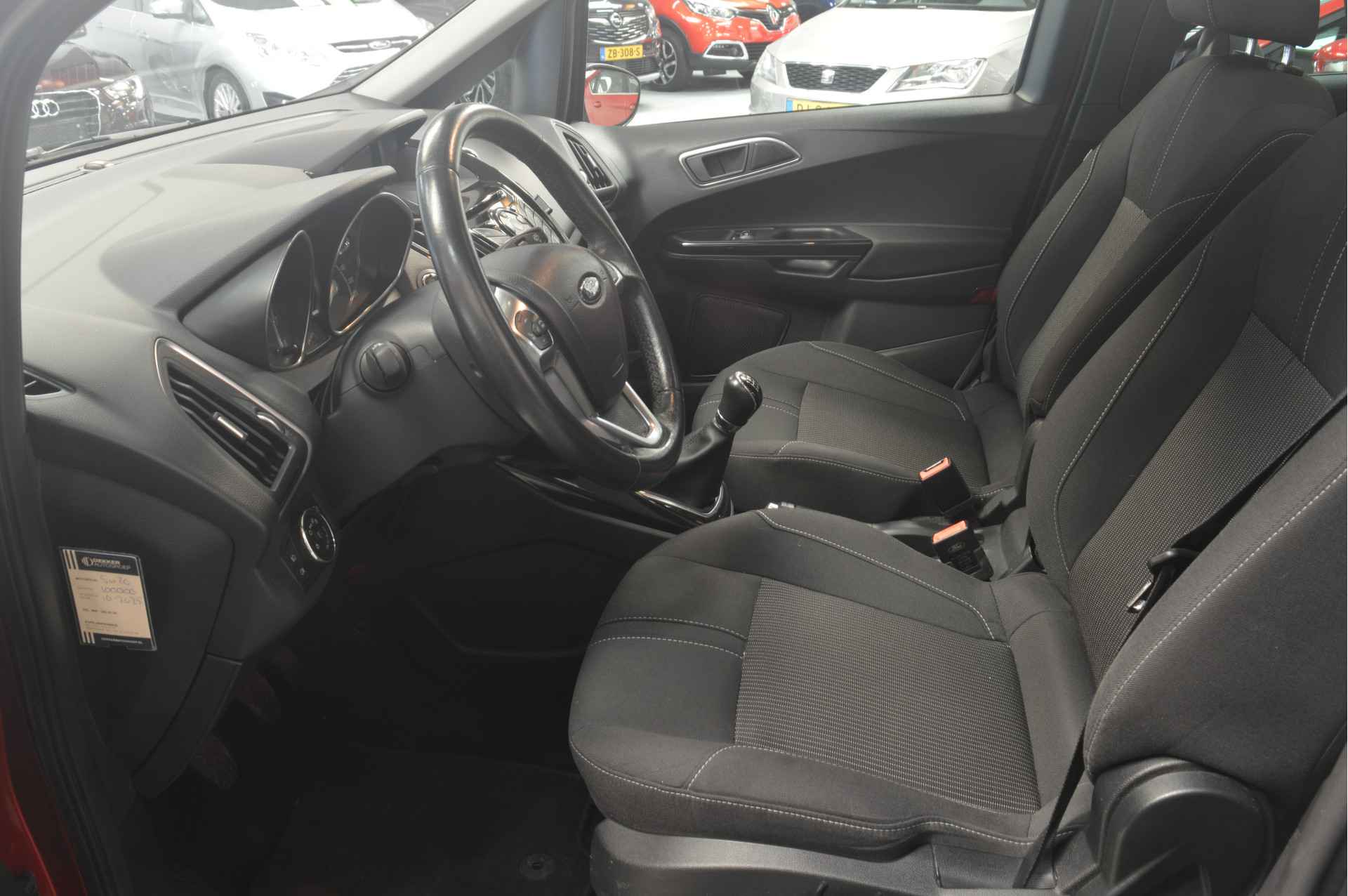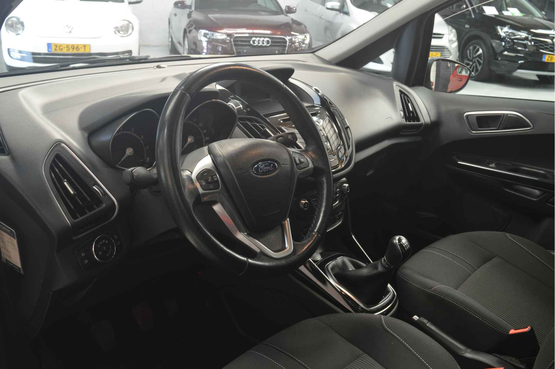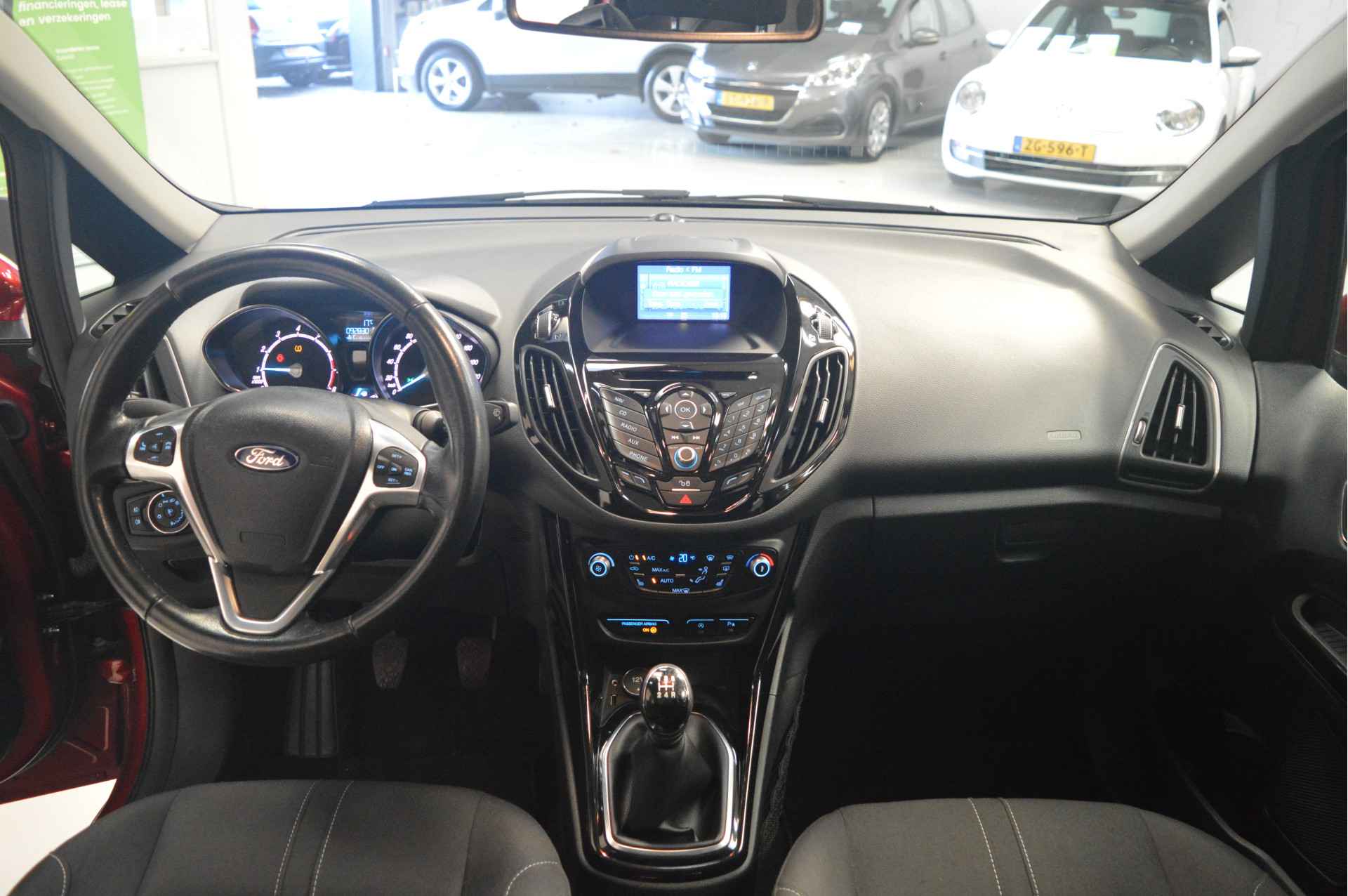 Vijf deuren bieden ruim toegang tot deze riante gezinsauto, deze Ford B-Max uit 2017 heeft 92830 kilometer op de teller staan. In deze auto vindt u een benzinemotor en een handgeschakelde vijfversnellingsbak. Een weldaad voor u en uw bijrijder: deze Ford B-Max heeft verwarmbare voorstoelen. Geniet van het uitzicht naar buiten door het riante glazen panoramadak. Bij de zeer complete uitrusting van deze auto behoren ook 16 inch lichtmetalen velgen, LED-dagrijverlichting, donker getint glas achter, in delen neerklapbare achterbank en verstelbare lendensteunen.