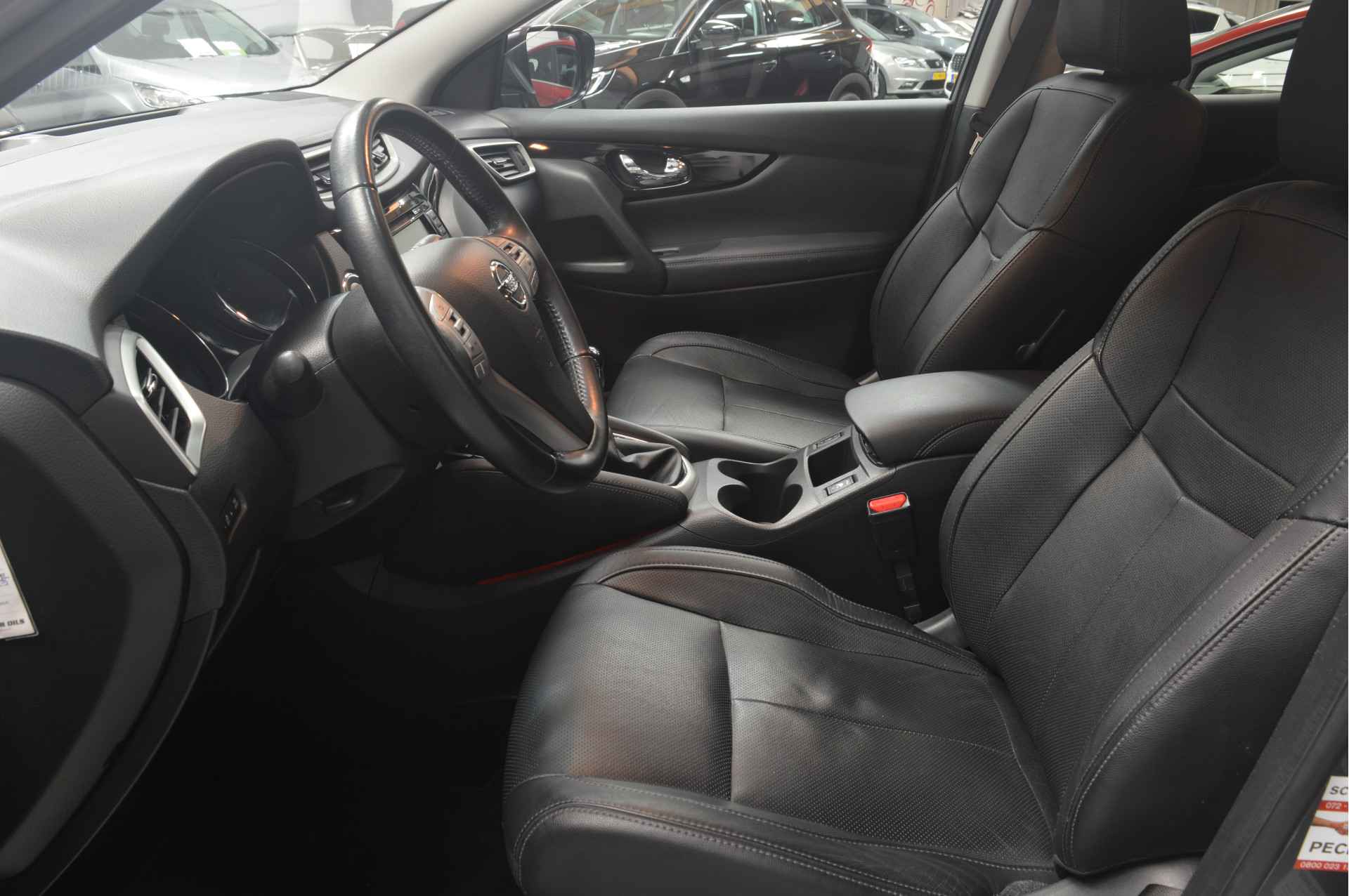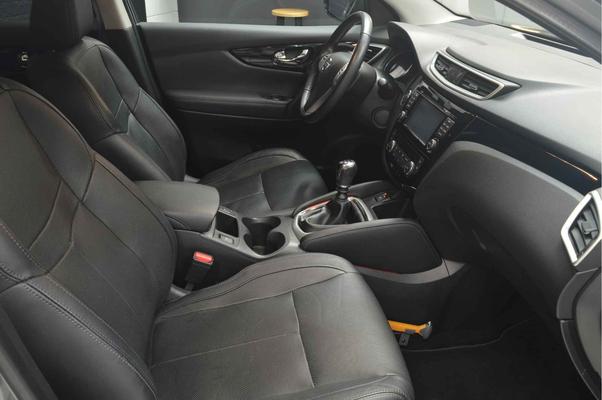 Zoals u mag verwachten van deze Nissan Qashqai is hij uitgerust met een reeks aan actieve veiligheidssystemen. In het instrumentarium ziet u tijdens de rit ook de belangrijkste verkeersborden aangegeven, die de auto automatisch voor u leest. Indien u onbedoeld de rijstrook lijkt te verlaten, reageert het Lane-keeping systeem meteen en corrigeert. Deze auto waarschuwt de bestuurder als die tekenen van vermoeidheid vertoont en kan zo ernstige ongelukken voorkomen. Dankzij veiligheidsvoorzieningen als dodehoekdetectie, hill hold functie, autonoom remsysteem en bandenspanningcontrolesysteem, bent u steeds veilig onderweg.